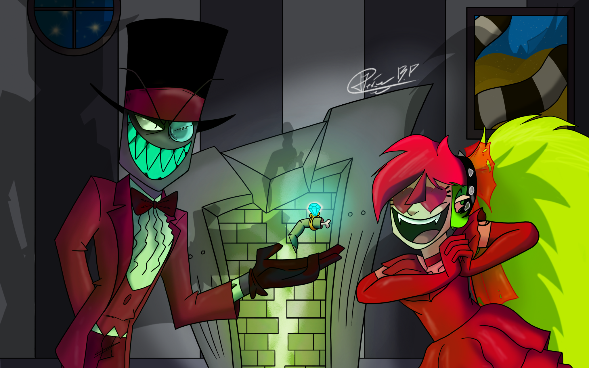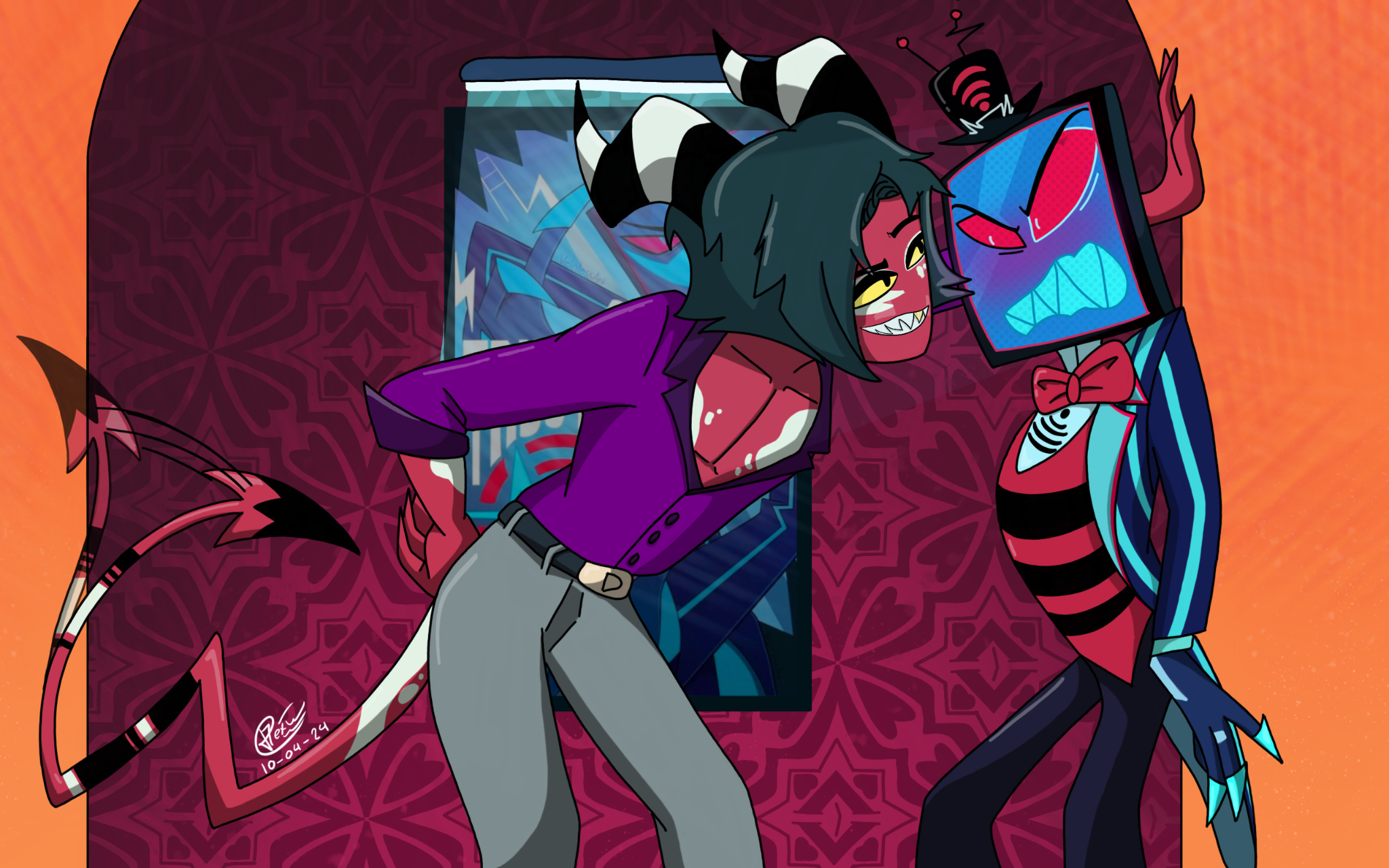 Fan Art • April 2024 Devil y Vox Esta es una ilustración de un personaje mío llamado Devil con un personaje del universo de Hazbin Hotel.