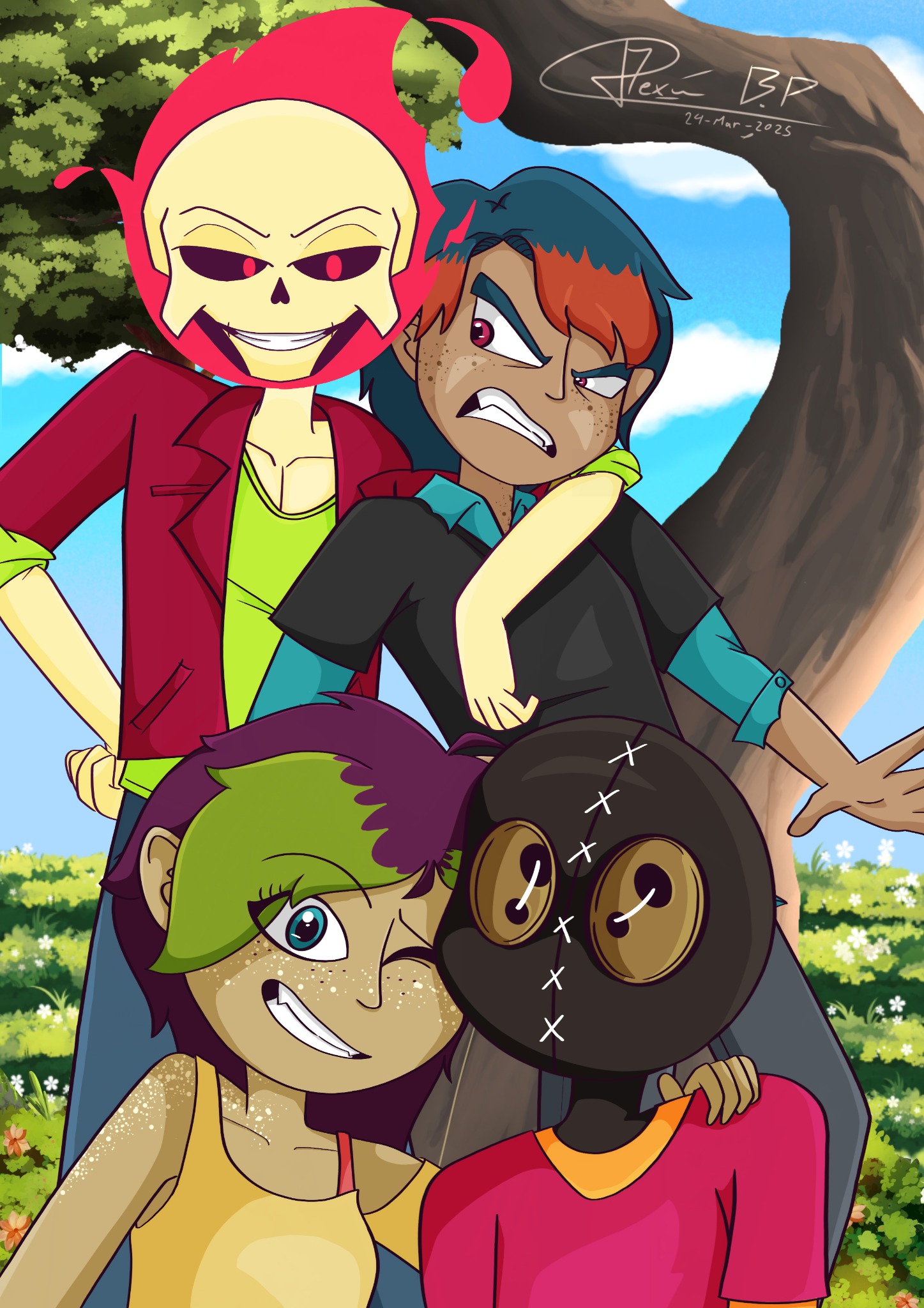 Desarrollo Visual • March 2025 Foto grupal 1 Esta es la primera fotografía de mis personajes más queridos. Le rogaron más de 30 minutos a Valiant para que apareciera pero al final Alex lo terminó obligando.